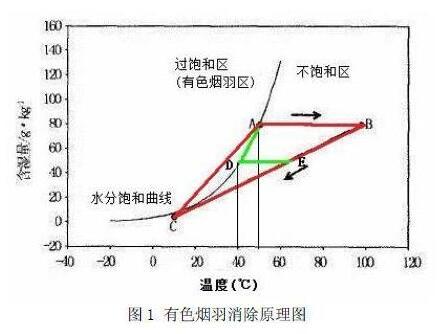 有色煙羽的產(chǎn)生不僅與本身的溫度、含濕量有關(guān),與排放的氣候環(huán)境也有很大關(guān)系,但是我們所能夠控制的因素只有煙氣的排放溫度和含濕量。
